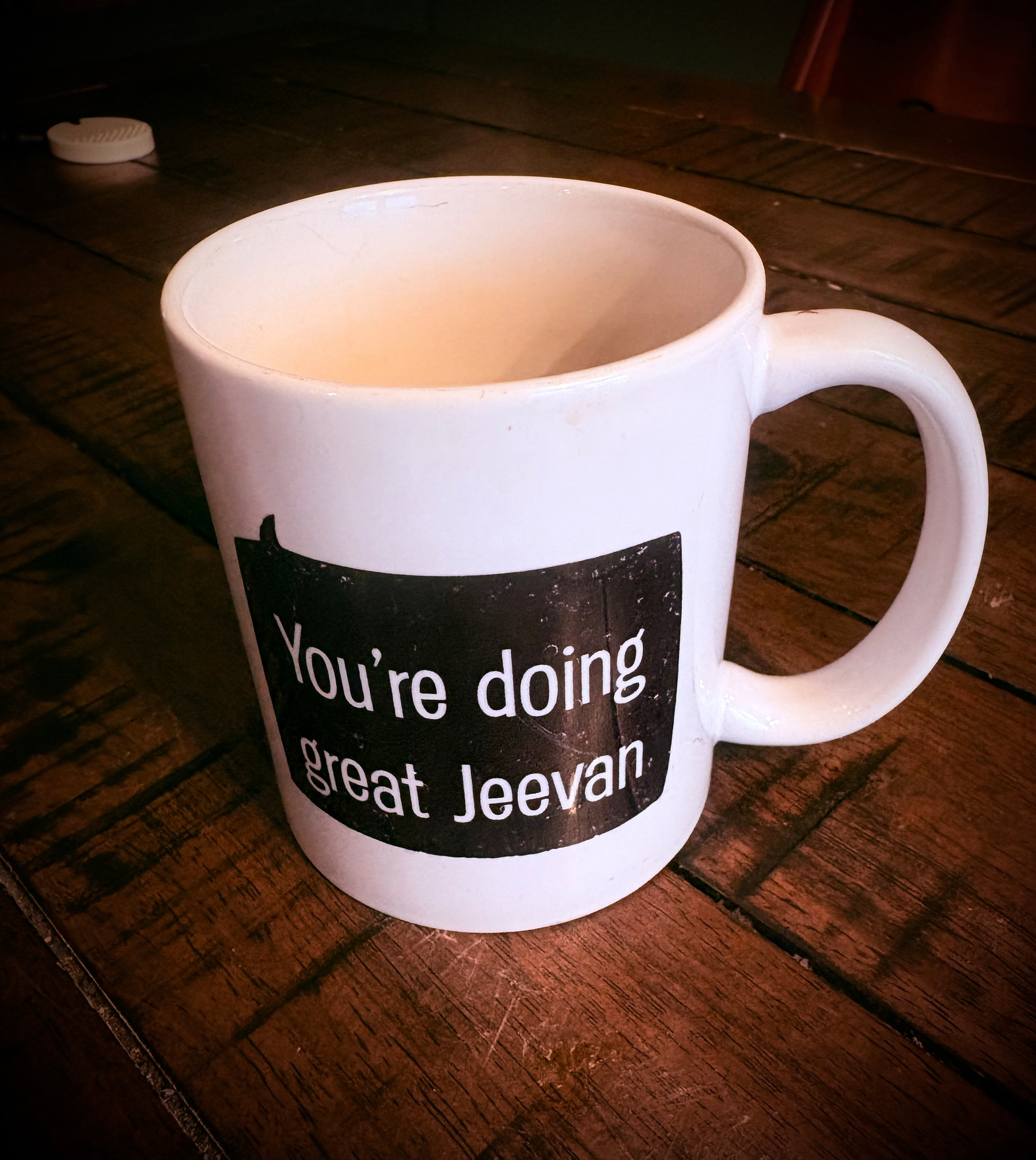 It is the morning of the fourth of February. I woke up early today and made my kids waffles for breakfast, which is something I would not normally have the time to do. I sat with them and drank coffee from a white mug with the words “You’re doing great, Jeevan” printed on it.